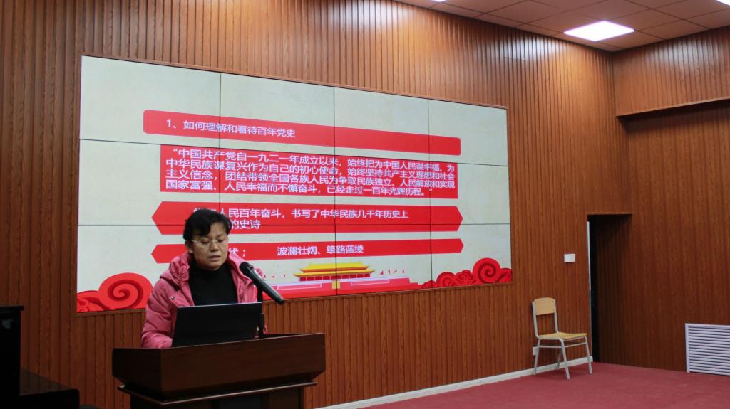 本次会议李华君以鼓励学生“从百年党史中汲取力量,担当使命”为中心展开,强调要将党的百年征程与实际相结合,学习贯彻党的十九届六中全会精神。之后她通过父辈与新时代青年不同的使命来理解和看待百年党史光辉历程,带领大家学习体会那份创业的不容易。接着她以简述太阳成tyc33455ccwww的发展历程为例,感叹党筚路蓝缕一路走来的艰苦。同时她讲述新时代国家的需求,以周恩来总理为榜样要求全体同学开阔家国视野,心中有信仰,脚下有力量,学习党坚持以人民为中心的宗旨,明确岗位职责,坚持为同学服务。