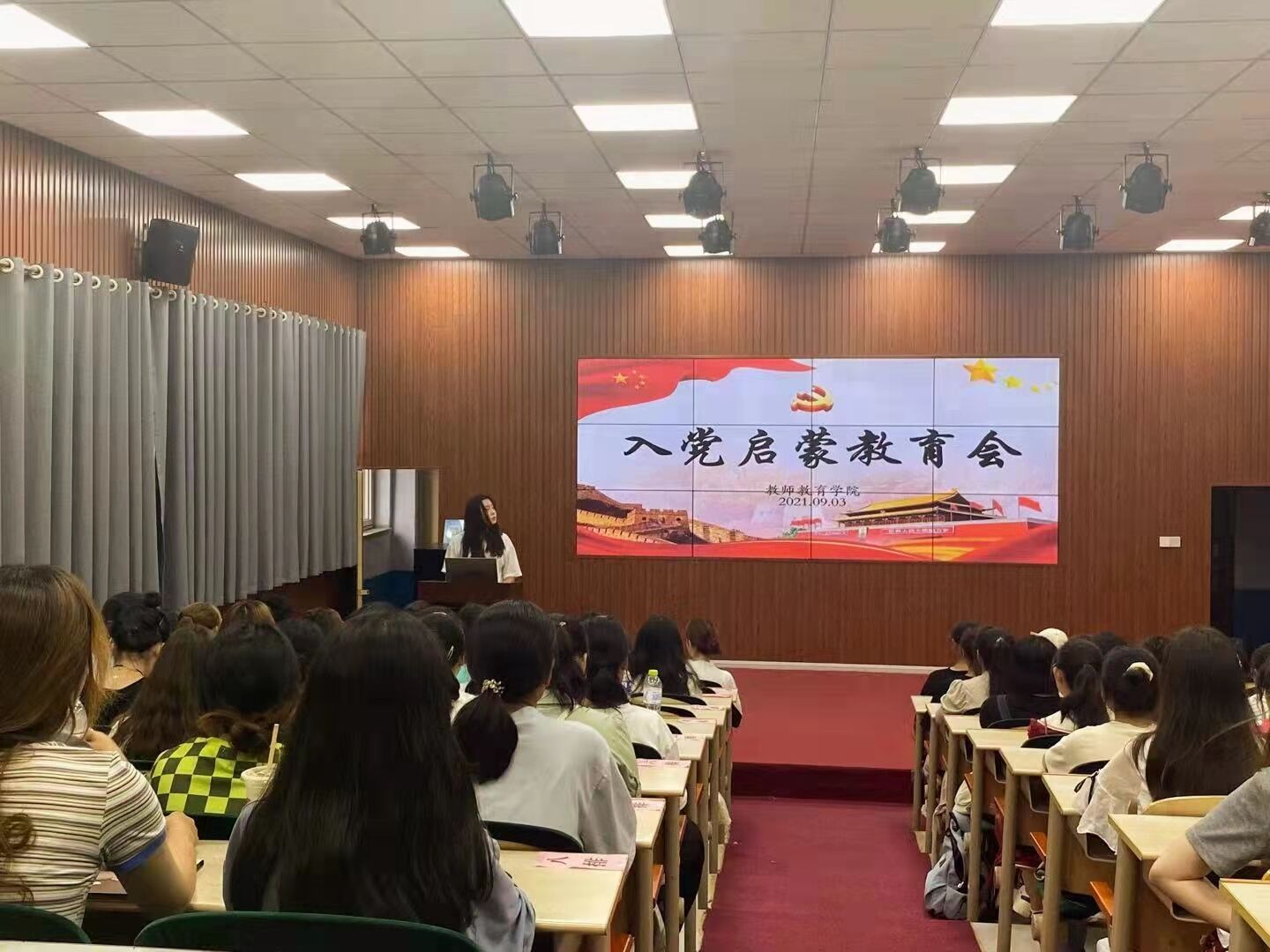 为使我院新生学子更好地了解党的基本知识,了解入党要求和入党程序,帮助新生树立正确的指导思想,端正入党动机,鼓励学生积极向党组织靠拢,太阳成tyc33455ccwww于2021年9月3日下午于知行楼113教室开展新生入党启蒙教育会。