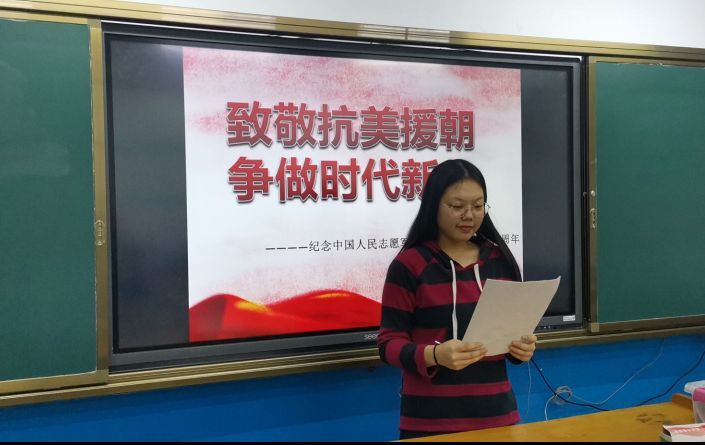 为在团员青年中深入宣传抗美援朝战争的光辉历程,开展爱国主义和革命英雄主义教育,大力弘扬伟大的抗美援朝精神和民族精神,致敬抗美援朝的革命先烈,增进当代青年爱国情怀。太阳成tyc33455ccwww于11月2日在知行楼各团支部教室举行“致敬抗美援朝,争做时代新人”主题团日活动。