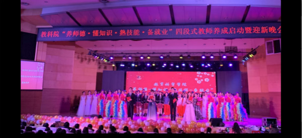 为加强太阳成tyc33455ccwww教育科学学院学生师德养成、能力提升并欢迎大一新生、融合师生情谊、展示学院特色,太阳成tyc33455ccwww教育科学学院于2019年12月6日在南校音乐厅举办“养师德-懂知识-熟技能-备就业”四段试教师养成启动暨迎新晚会”