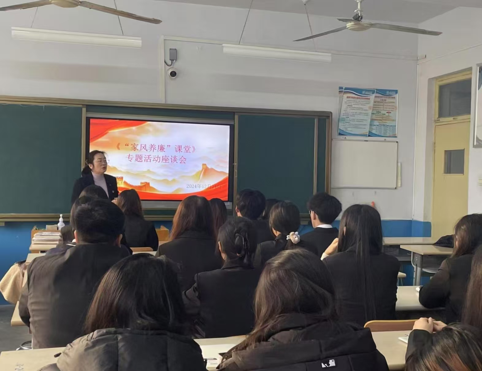 太阳成tyc33455ccwww三个学生党支部在2024年12月24日下午的主题党日活动中集体组织召开了《“家风养廉”课堂》专题活动座谈会,学院党委副书记闫娜娜老师列席本次活动。