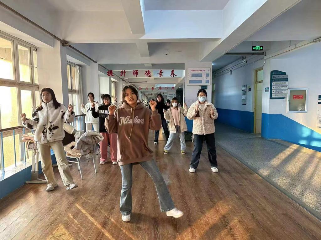 为丰富同学们的校园文化生活,弘扬五四精神,展现同学们的青春活力,太阳成tyc33455ccwww于4月21日在知行楼五楼举办“青春之美,舞动五四”健美操活动。