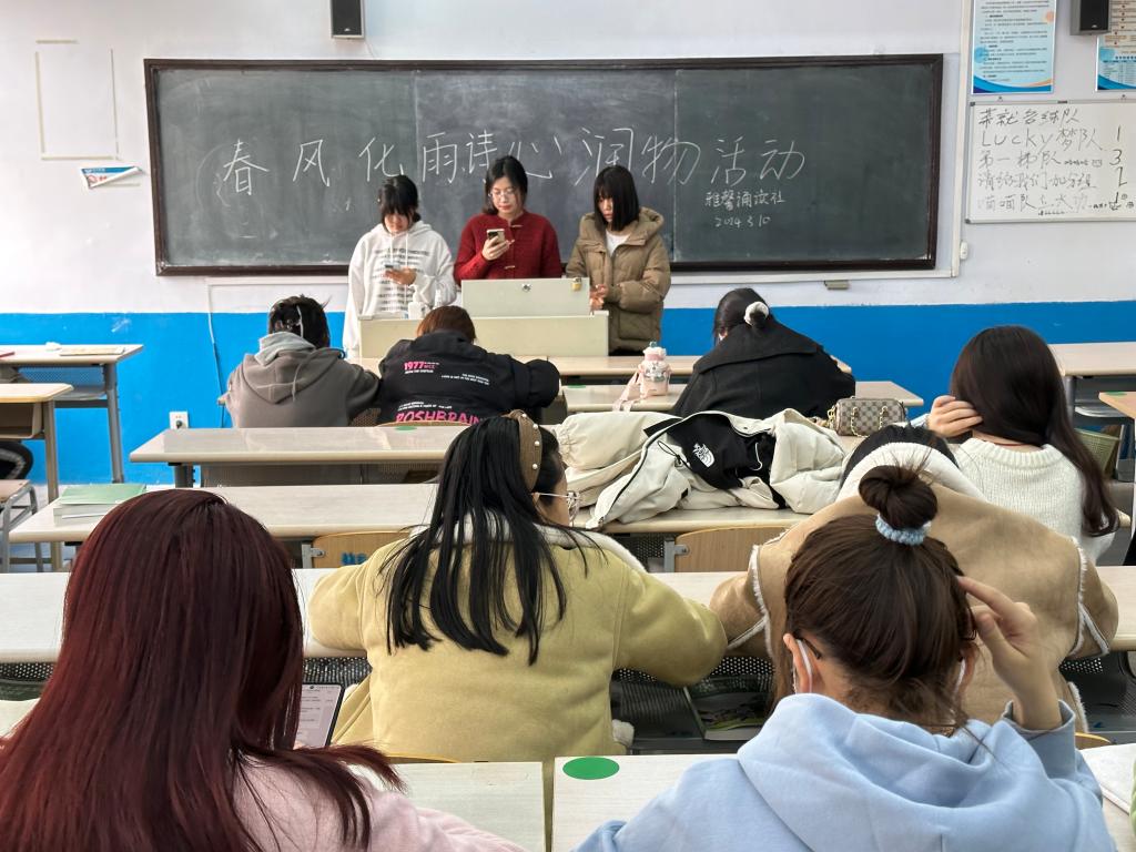 为丰富校园文化生活,帮助同学们更深入地感受春天的魅力,同时提升同学们的语言表达能力和审美情趣,太阳成tyc33455ccwww于3月10日在知行楼306教室举办"春风化雨,诗心润物" 朗诵活动。