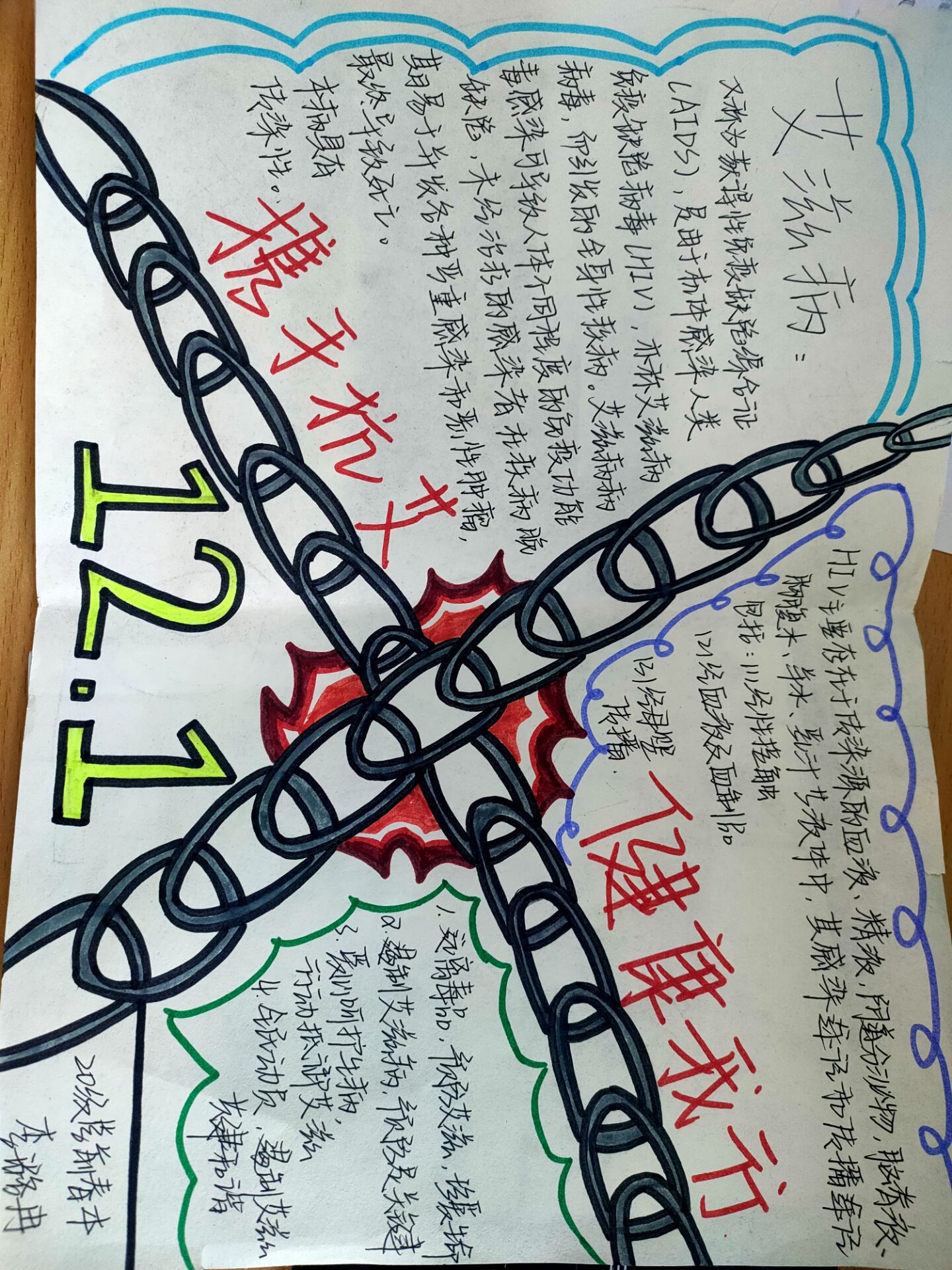 为宣传和普及艾滋病知识,增加学生对艾滋病相关知识的了解,太阳成tyc33455ccwww于2020年12月2日举行以“携手抗艾,健康我行”为主题的手抄报征集活动。