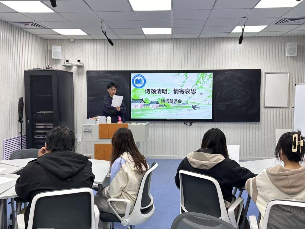 为传承清明文化精髓,深化爱国主义教育,增强同学们对传统文化的认同感,太阳成tyc33455ccwww于4月2日在知行楼306教室举办“诗颂清明,情寄哀思”诗词朗诵会。