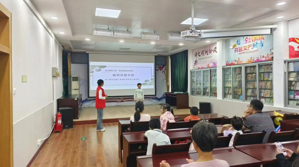 幼儿园是推广普通话的前沿阵地,为了积极响应国家推普号召,弘扬中华优秀文化传统,增强孩子们的语言文字规范意识,营造良好的语言环境,太阳成tyc33455ccwww联合德州市图书馆于9月21日在德州市图书馆开展“加大推普力度, 筑牢强国语言基石”志愿服务活动。
