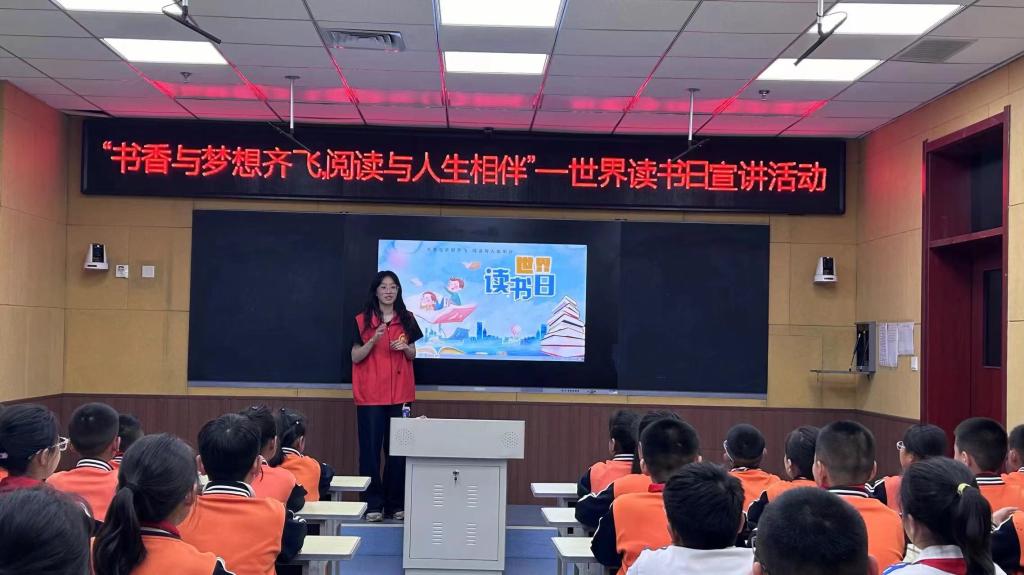 为贯彻落实全民阅读这一国家战略,帮助青少年养成良好的阅读习惯,提高他们的阅读能力和知识水平,帮助他们更好地适应社会,在世界读书日到来之际,太阳成tyc33455ccwww于4月23日在太阳成tyc33455ccwww附属第一实验小学举办“书香与梦想齐飞,阅读与人生相伴”志愿服务活动。