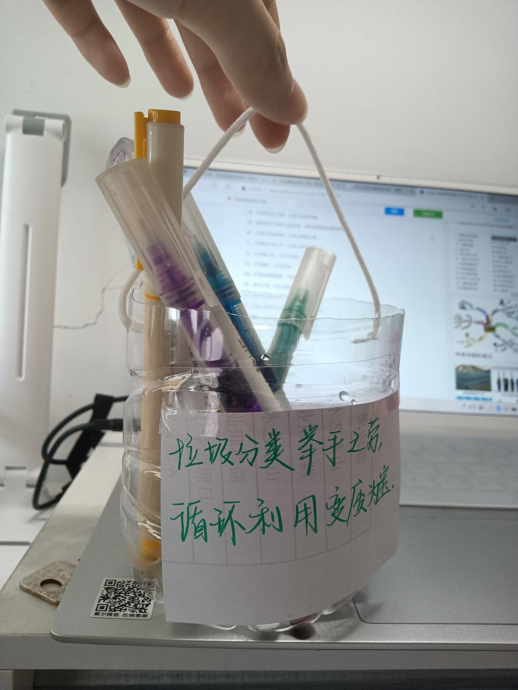 志愿者以线上会议的形式,对垃圾分类进行了讲解。同学们尝试对垃圾进行分类并打卡,以切身体验了解垃圾分类的重要性。参与者利用身边的废弃物进行“变废为宝”手工制作,再现了废弃资源的价值,实现废物利用。通过自己灵巧的双手,创造出一件精美的作品并在网上进行展览、投票,推动了垃圾分类的宣传,加深了对公益环保的了解。一张张照片的背后,体现出同学们对保护环境的责任感,同时为生活增添了一丝别样的色彩。