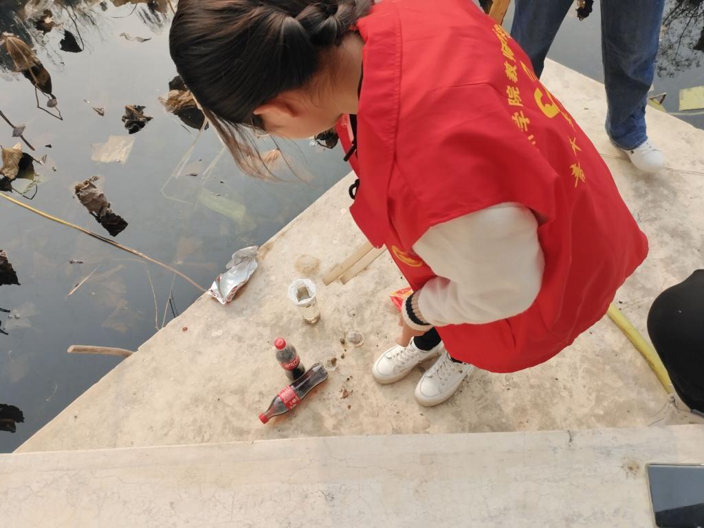 活动伊始,同学们于秋实园排好队,由负责人介绍此次活动的要求和安排。负责人分发志愿者服装及材料,本次活动拉开序幕。秋风浸透绿叶,文明深入人心。志愿者们向同学们讲述着文明时代新精神,话语中洋溢的不仅是文明之风,更是一股青春之风。活动中期,志愿者们打扫地上的树叶,清理池水中的垃圾。活动最后同学们积极发表了志愿者感言,并投票选出最美志愿者。