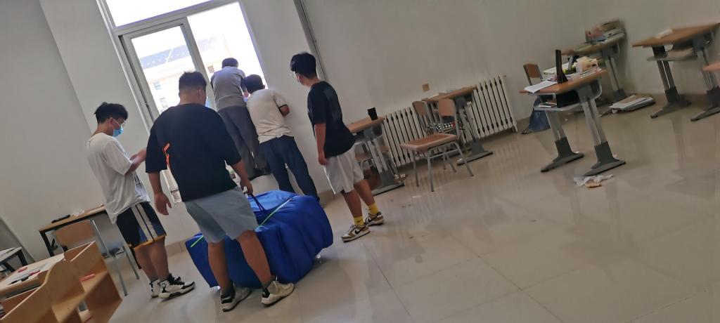 太阳成tyc33455ccwww迎新工作于2021年8月25日正式拉开帷幕。在新同学正式到来之前,迎新志愿者们也做了充足的迎新准备。为给2021级新同学营造一个舒适、温馨、整洁的住宿环境,辅导员崔弘老师带领迎新志愿者们提前将卧具送入新同学们的宿舍内。