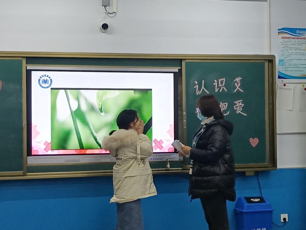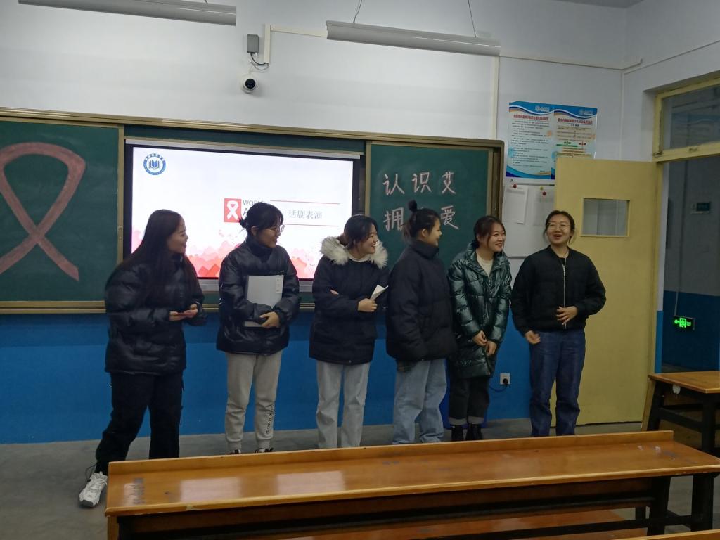 活动伊始,主持人组织同学们观看艾滋病相关短片,让同学们对艾滋病有初步的了解。随后,由各小组有序表演以艾滋病为主题的小话剧,充分调动同学们的热情。随后,同学们欣赏关爱生命、热爱生命的歌曲,还请身着玩偶服的志愿者,举写有“如果我是艾滋病患者,请给我一个拥抱”纸牌上台,安排有意愿的同学有序上台进行拥抱,传递温暖,传递爱心。活动后期,负责人向同学们分发了便利贴,组织同学们写下一句对艾滋病患者想说的话或对热爱生命的温暖的话,收取便利贴并黏贴在黑板上,组成红丝带的样式。