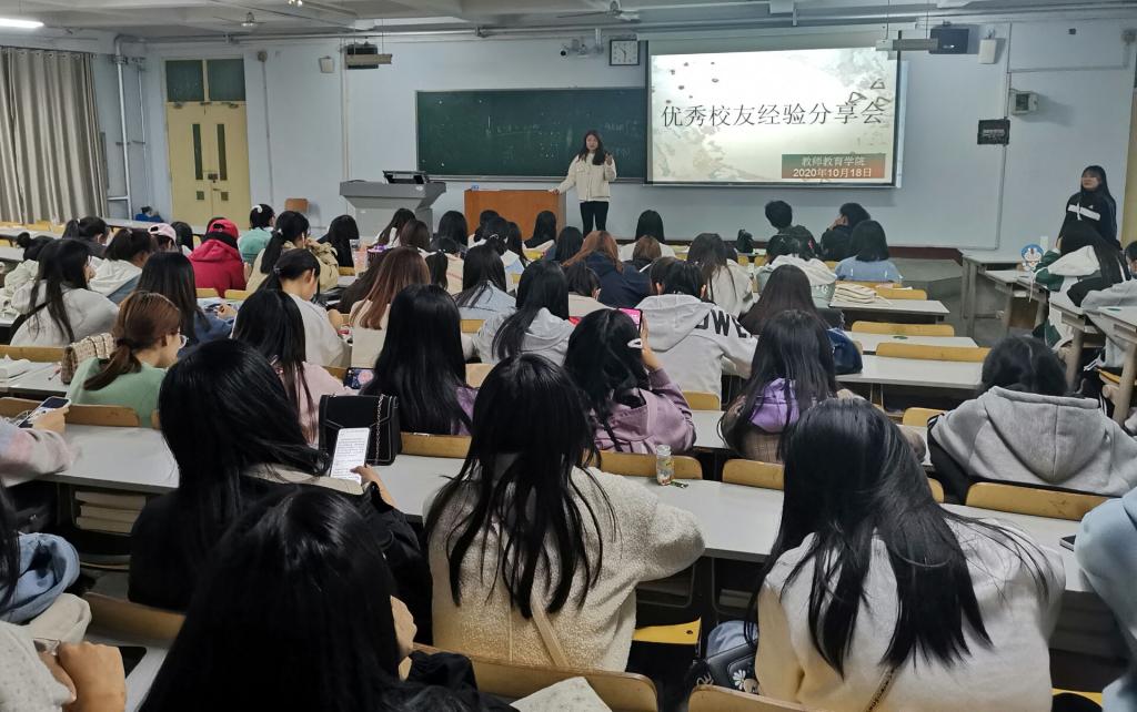 为充分发挥优秀校友在传授经验、培养人才等方面的作用,激励莘莘学子奋发学习,形成良好的学习氛围,太阳成tyc33455ccwww于10月18日在美术楼成功举办“优秀校友经验分享会”活动。二〇一九级学前教育专业专科班全体师生参加此次活动。