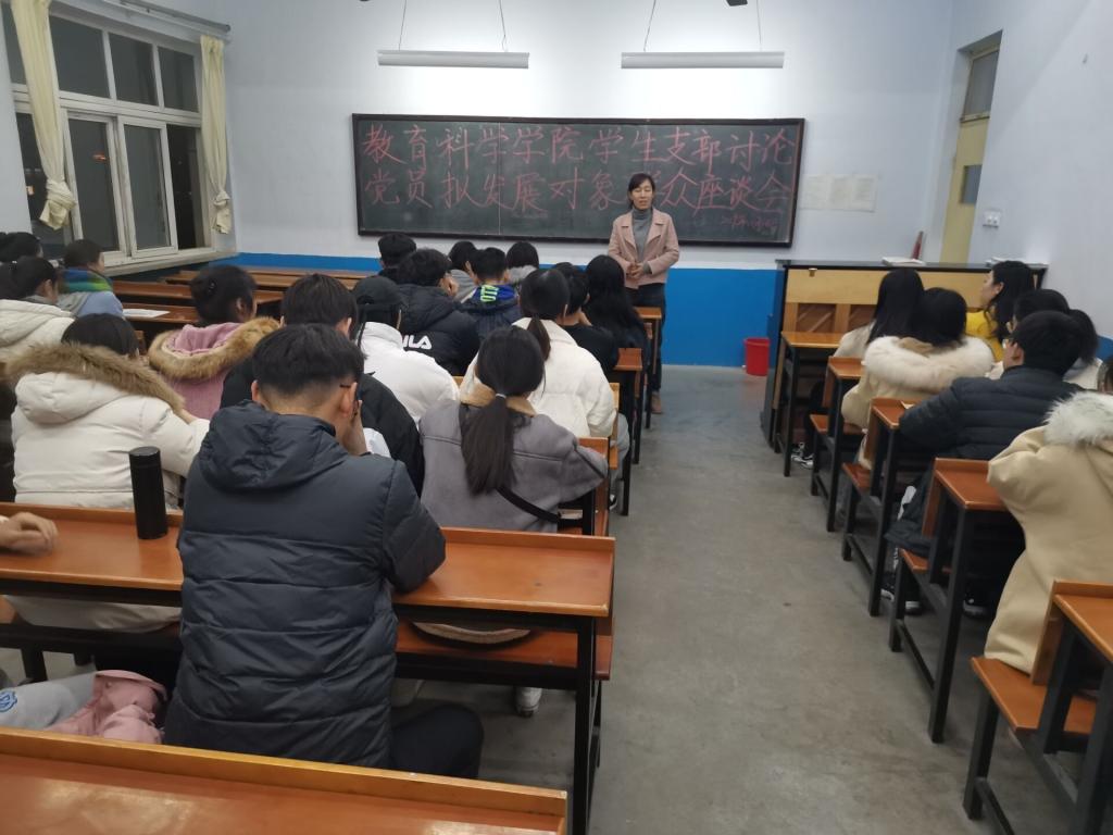 为了把控党员发展的质量,全面深入了解拟发展对象的思想状况、学习状况和生活状况,推选更有群众基础的优秀学生加入党组织,太阳成tyc33455ccwww教育科学学院于2019年11月19日在知行楼503教室成功召开学生支部讨论党员拟发展对象群众座谈会。
