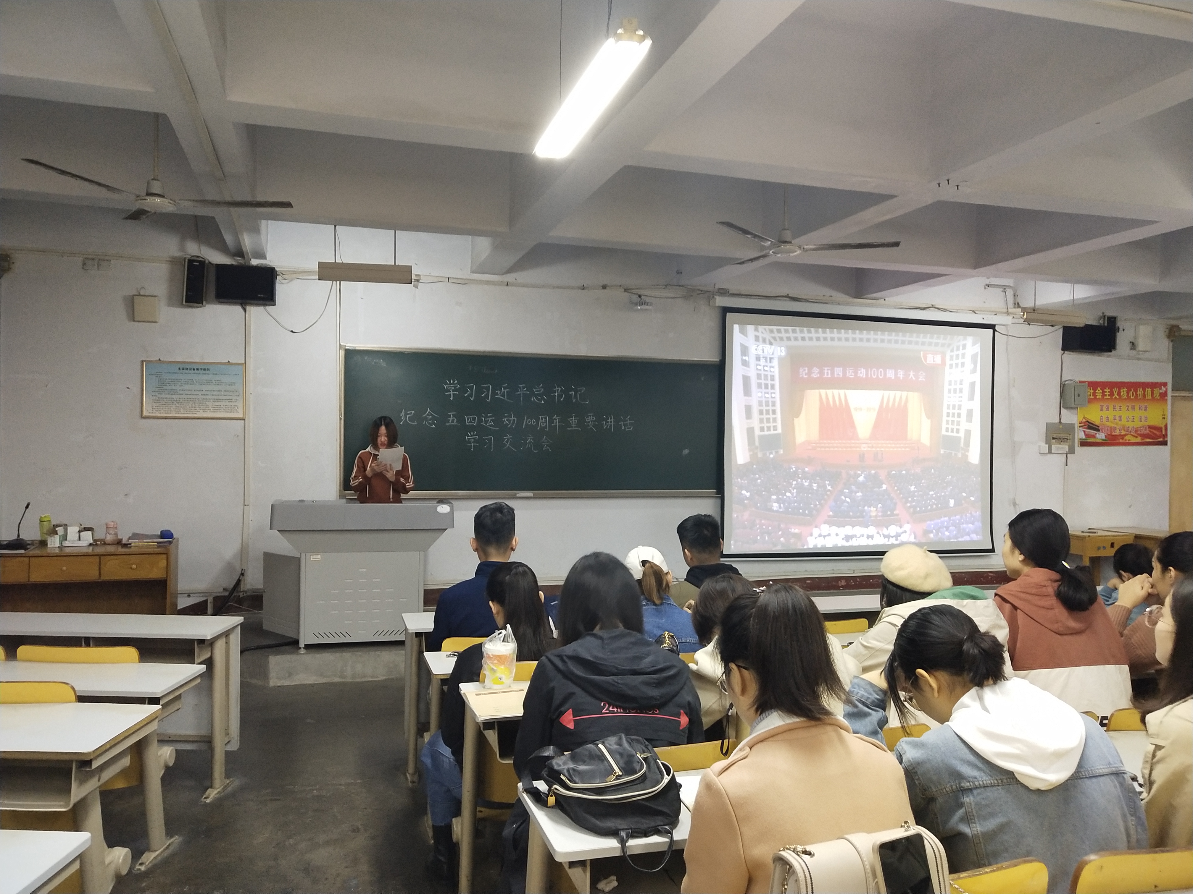 活动开始之前,班长对班级团员进行点名签到,并向大家介绍了此次活动的目的与意义。随后,在团支部书记的组织领导下,同学们先阅读了习近平总书记关于纪念五四运动100周年重要讲话文稿,其次观看了习近平总书记在纪念五四运动100周年重要讲话的演讲视频,帮助学生进一步认识了五四运动的过程背景及其重大意义。在将一个多小时的视频观看过程中,整个会场秩序井然,同学们都边观看边认真做笔记。视频结束后,大家深受鼓舞,在组织委员与宣传委员的鼓励下,同学们各抒己见,进行了热烈地交流和沟通。