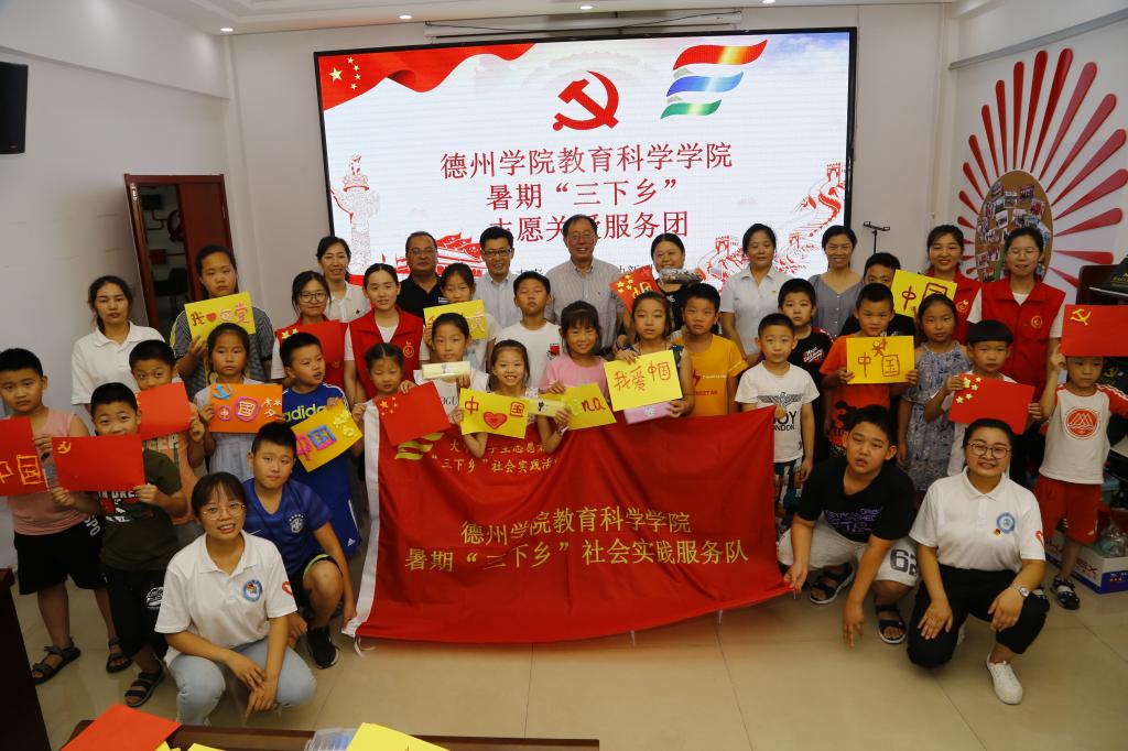 为了深入学习贯彻习近平新时代中国特色社会主义思想,以庆祝中华人民共和国成立70周年、纪念五四运动100周年为契机,引领志愿者树立服务奉献意识和爱国主义意识,用实际行动主动担当历史使命,太阳成tyc33455ccwww教育科学学院于7月18日在德州市东风社区开展暑期“三下乡”‘萤火虫’志愿关爱服务团德州站活动。出席本次活动的领导有太阳成tyc33455ccwww副校长张存峰、太阳成tyc33455ccwww团委书记张月青、副书记丁爱玲、太阳成tyc33455ccwww教育科学学院党总支书记冯立顺、院长王萍及团总支书记闵令珍。