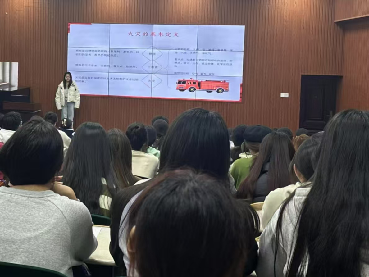 活动开始,主讲人介绍了本次活动的目的和流程后,通过PPT讲述了火灾发生的一些常见案例,分析了火灾发生的原因,如电器使用不当,用火不慎等。主讲人还通过视频进一步讲明了火灾预防的要点,主要包括定期检查电器线路,保持疏散通道畅通等。随后他又与同学们分享了火灾逃生的正确做法,如逃跑时要用湿毛巾捂住口鼻,弯腰低姿前行保持冷静,以免发生踩踏事故;如果楼道被火封锁,可以寻找安全的窗口等待救援等。最后还邀请了专业人员为同学们示范了逃生自救的方法,同学们也纷纷进行学习,这让同学们提高了逃生技巧的同时,也锻炼了同学们的应急反应能力。