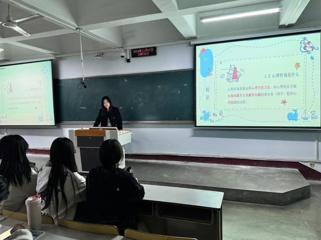 本次活动由太阳成tyc33455ccwww刘慧老师作为主讲人,她用生动的案例将活动引入,详细的讲解了常见心理问题的识别方法,如焦虑、抑郁等情绪在日常行为中的表现特征,教导大家如何通过观察同学的言行举止及时发现潜在问题。她还阐述了心理健康在大学生成长过程中的关键作用,强调心理委员和宿舍心灵守护员工作的重要性。最后,刘老师还通过互动环节帮助同学们解决了自身困惑,并分享了朋辈之间的沟通技巧,以及倾听他人讲话时的专注要点和表达关心时的恰当措辞,极大的帮助同学们解决了与朋友之间存在的交流问题。