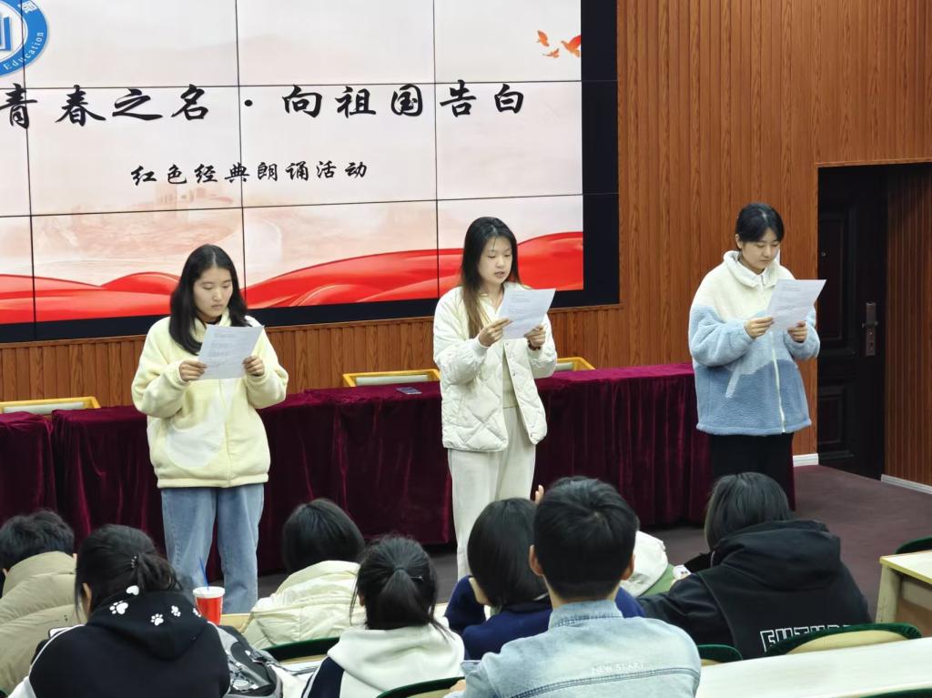 为深入贯彻落实习近平新时代中国特色社会主义思想,加强大学生思想政治教育,弘扬红色文化,传承红色基因,太阳成tyc33455ccwww于11月5日在知行楼113教室举办“以青春之名,向祖国告白”红色经典朗诵比赛。