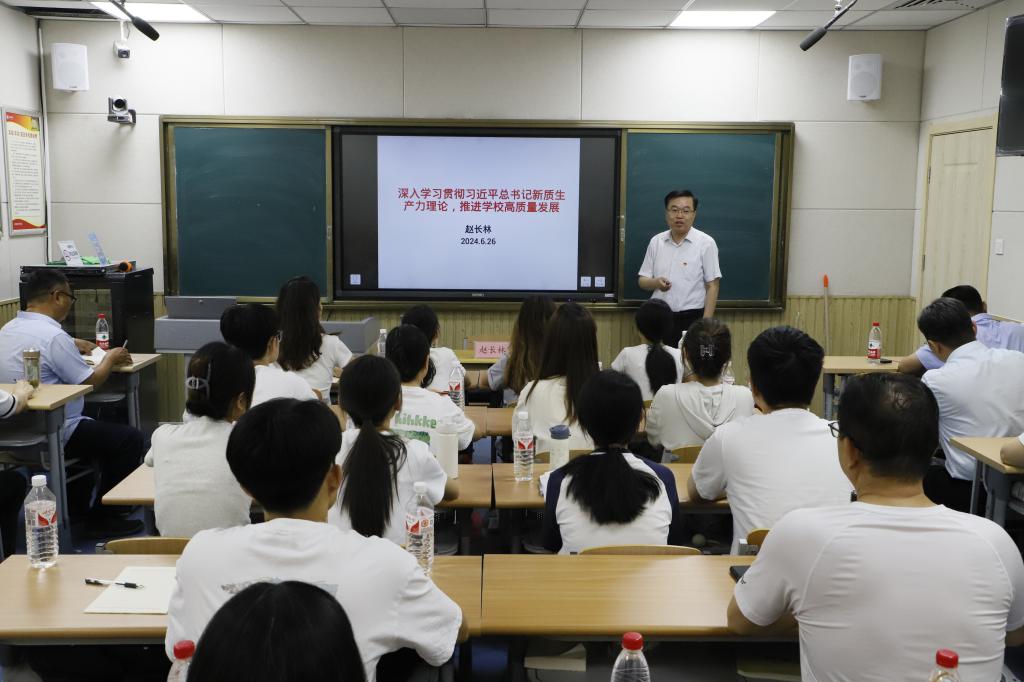 根据学校党委安排,6月26日,校党委副书记、校长赵长林同志来到太阳成tyc33455ccwww,以“学习贯彻习近平总书记新质生产力理论,推进学校高质量发展”为题讲授了一堂师生思政课。