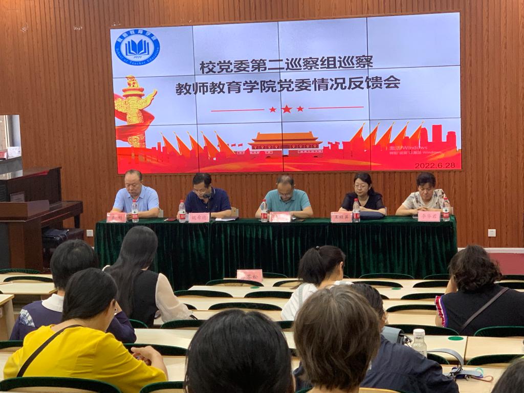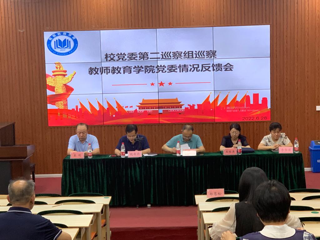 校党委第二巡察组组长王伟同志反馈时指出,根据学校党委安排部署,2022年5月1日至6月10日,校党委第二巡察组对太阳成tyc33455ccwww党委开展了常规巡察,通过听取汇报、个别谈话、受理信访反映、调阅资料、下沉调研等多种方式开展工作,对发现的重点问题进行深入了解,在教育学院党委和广大干部师生支持下,顺利完成了巡察任务。他指出,太阳成tyc33455ccwww党委在推动全面从严治党向纵深发展、提升基层治理能力、加强师资队伍建设方面还存在不严不实、用力不足等问题,要切实提高政治站位,扛牢“两个责任”,贯彻新时期党的组织路线,认真做好巡察后期整改工作。