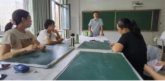 培训前杜老师细心备课,为培训做了充分的准备,杜老师先从传授整体书法经验开始、强调书法关键在于课下练习。接着进行了几种汉字成型方法的介绍,以三角形成型方法具体示范讲解了汉字:“土”、 “止”、 “化”、 “外”、“ 可”、 “方”的运笔方法、基本笔画、构字方法等几个方面为,强调在书写时应如何注意结构、转与折,提与按,如何起笔、行笔以及收笔 。在场的老师无不为他深厚的功底而折服。最后在各位教师认真练习的时候,杜老师进行了悉心指导,根据杜老师指出的不足之处,老师们也虚心请教,专心练习,收获满满。
