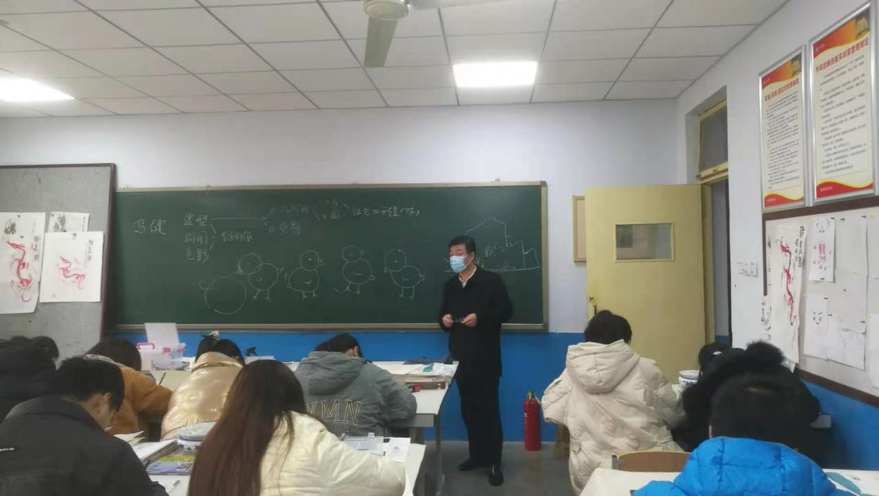 3月1日,2021年春季学期开学第一天,党委委员、纪委书记、监察专员刘继泉到太阳成tyc33455ccwww指导开学工作并到所联系班级随堂听课。刘书记听取了马健老师的《美术学原理》课程并与师生亲切交流,对教师教学方法、课堂教学质量、学生的学习效果等方面提出指导性意见。