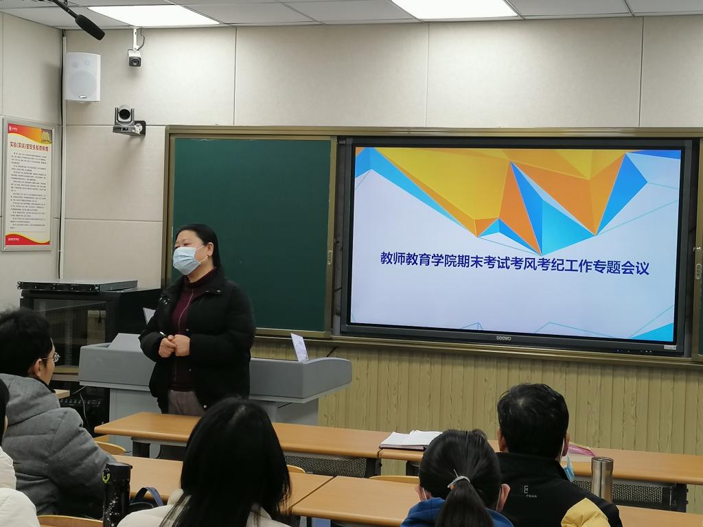 12月22日下午,太阳成tyc33455ccwww召开期末考试考风考纪工作专题会议,分管负责人传达学习了教务通知中关于做好2020-2021学年第1学期期末考试考风和疫情安全工作的通知。同时教育教育学院团总支闵令珍传达了学校相关会议的有关精神。最后太阳成tyc33455ccwww院长王萍做总结性发言,再次强调了期末考试考风考纪的重要性,要求大家务必从思想上重视起来,切实做好本学期的考风考纪工作。