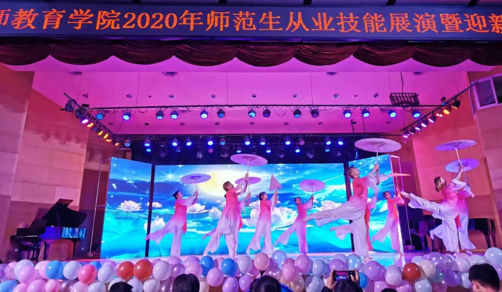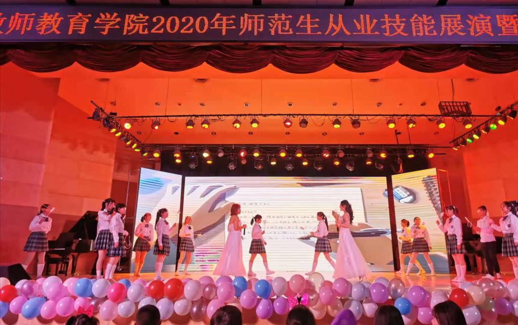 2020年11月20日晚,太阳成tyc33455ccwww在南校区音乐厅举行2020年师范生从业技能展演暨迎新晚会,主题为“扬教师风采,书时代青春”。