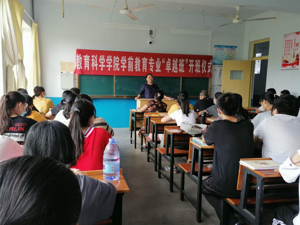 教育科学学院院长王萍、党总支书记冯立顺先后致辞。卓越班全体学生卓越班领导小组全体成员、卓越班导师、卓越班班主任及部分学生管理人员及2019级学前教育专业“卓越班”全体同学参加开班仪式。