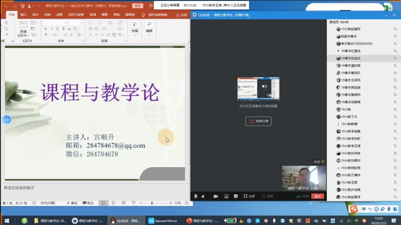 为了使同学们能够流畅的学习,为了能够保质保量的完成线上教学任务,我院组织教师主要做了以下准备:一、选择教学平台、建立学习群组。学校通过统计教师意愿,为教师们提供了超星、智慧树、学堂在线三个教学交流平台,教师们按照自己的课程特点选择合适的教学平台,通过辅导员和班干部建立了qq、微信交流群来进行消息发布及线上答疑。二、精心准备课程,交流平台使用方法。教师们积极探索线上教学模式,学习已开课学校经验,做好备用方案,防止由于大量学生同时线上上课导致的平台网络瘫痪问题,教师们还准备了qq直播、腾讯会议直播等方式,此外准备了摄像头、A4纸、白板等来解决板书的问题,做好至少两种方式备用,以便在一种线上教学方式产生问题时,能够及时采用备用方式,保证在规定的时间内完成教学任务。