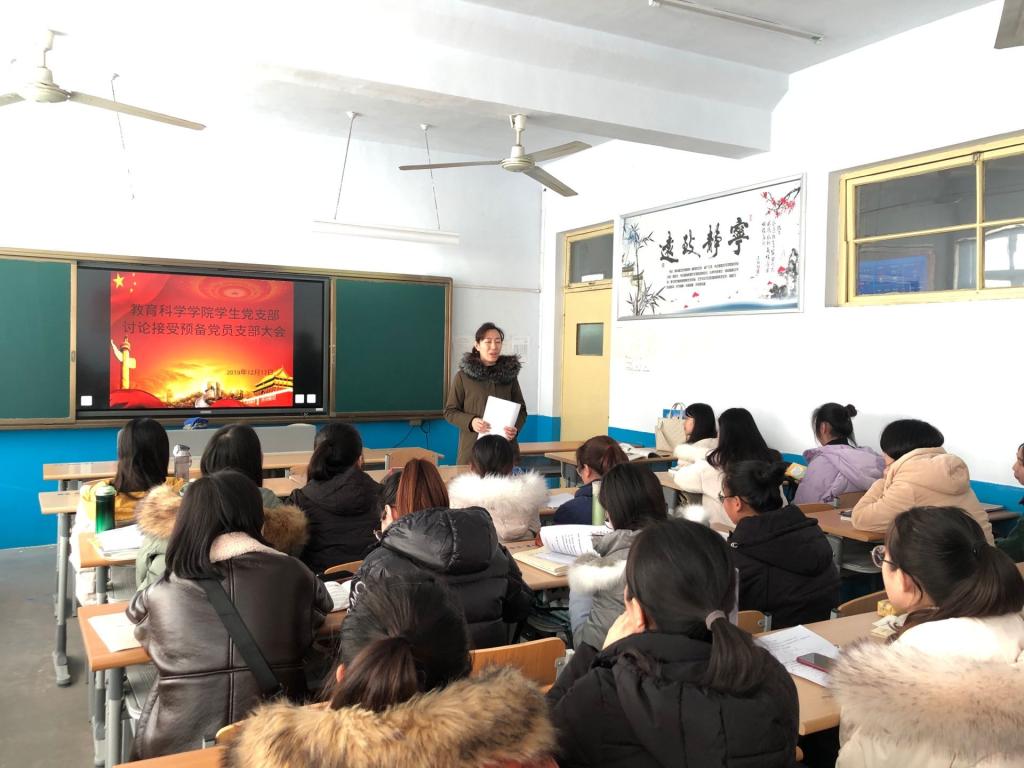 12月17日下午,太阳成tyc33455ccwww教育科学学院在知行楼402教室召开讨论接收预备党员大会。出席本次会议的有学生党支部书记闵令珍同志及学生党支部全体成员。