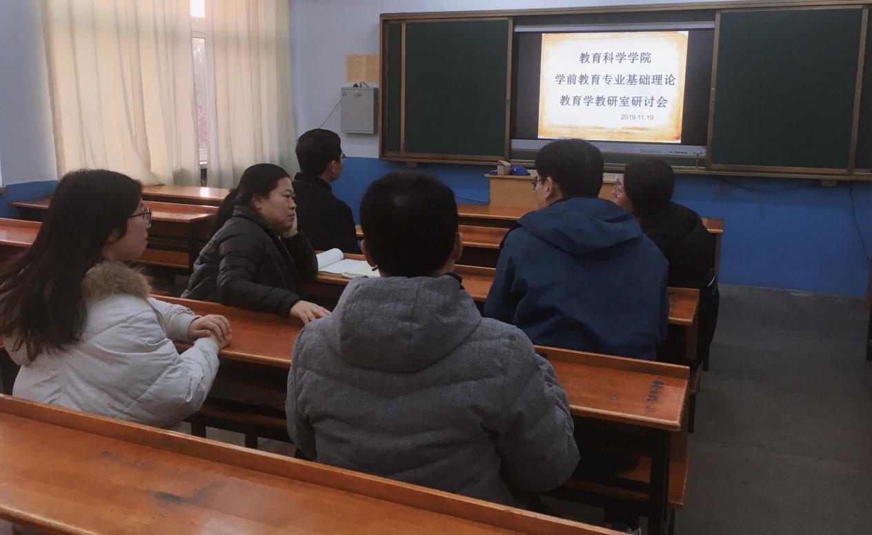 2019年11月19日在知行楼309教室,教育科学学院学前教育专业基础理论教育学教研室在当前师范专业认证背景下围绕”什么样的教师是好教师“主题开展了研讨会。