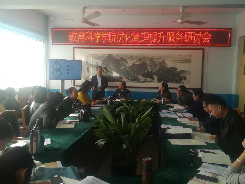 院长王萍主持会议,教科院全体教职工参加会议。