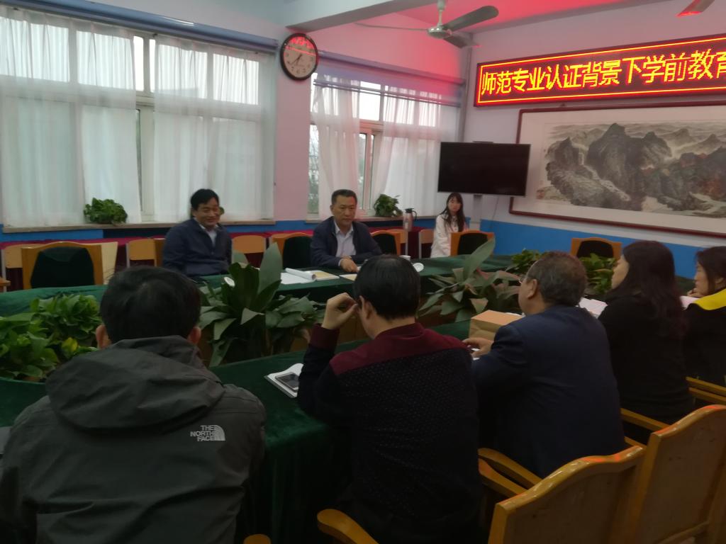 2019年4月17日,太阳成tyc33455ccwww校长赵胜村、太阳成tyc33455ccwww党委委员副校长张明征来我院调研。学校领导在我院党政负责人陪同下首先参观了教科院楼宇文化建设,并提出了建设性指导意见。随后,在三层会议室,学校领导就我院学前教育专业认证工作进行了专题调研。教科院院长王萍做师范专业认证工作汇报。赵胜村着重就学前教育专业认证工作中存在的需要学校层面予以协调解决的问题有针对性的进行发问和分析。