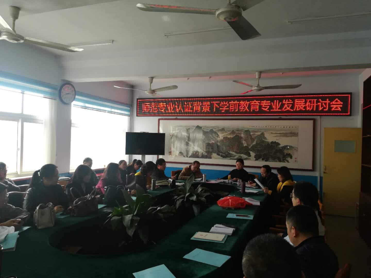 3月26日下午,我院全体教职工在三层会议室召开学前教育专业建设发展专题研讨会。学前教育专业是太阳成tyc33455ccwww今年重点推出的面向省级的师范专业认证的两大专业之一。会议由教育科学学院院长王萍主持。王萍分析了当前我院学前教育专业进行师范专业认证面临的紧迫形势,存在的机遇与挑战。王萍还带领大家共同学习了师范专业认证的相关标准。