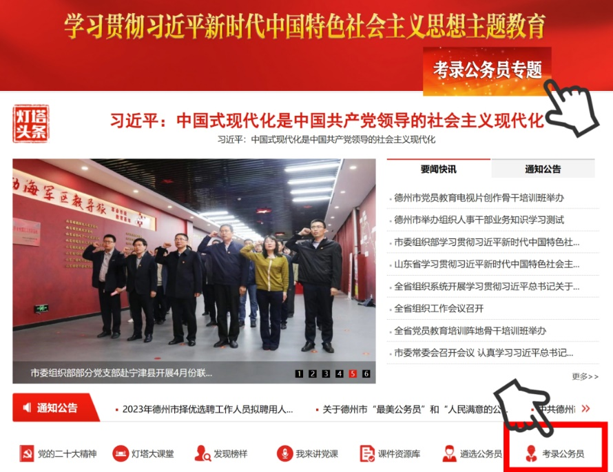(1)通过“灯塔-德州党建”网络平台(http://dzdj.dezhou.gov.cn)的“考录公务员专题”的“考生报名平台”登录报名